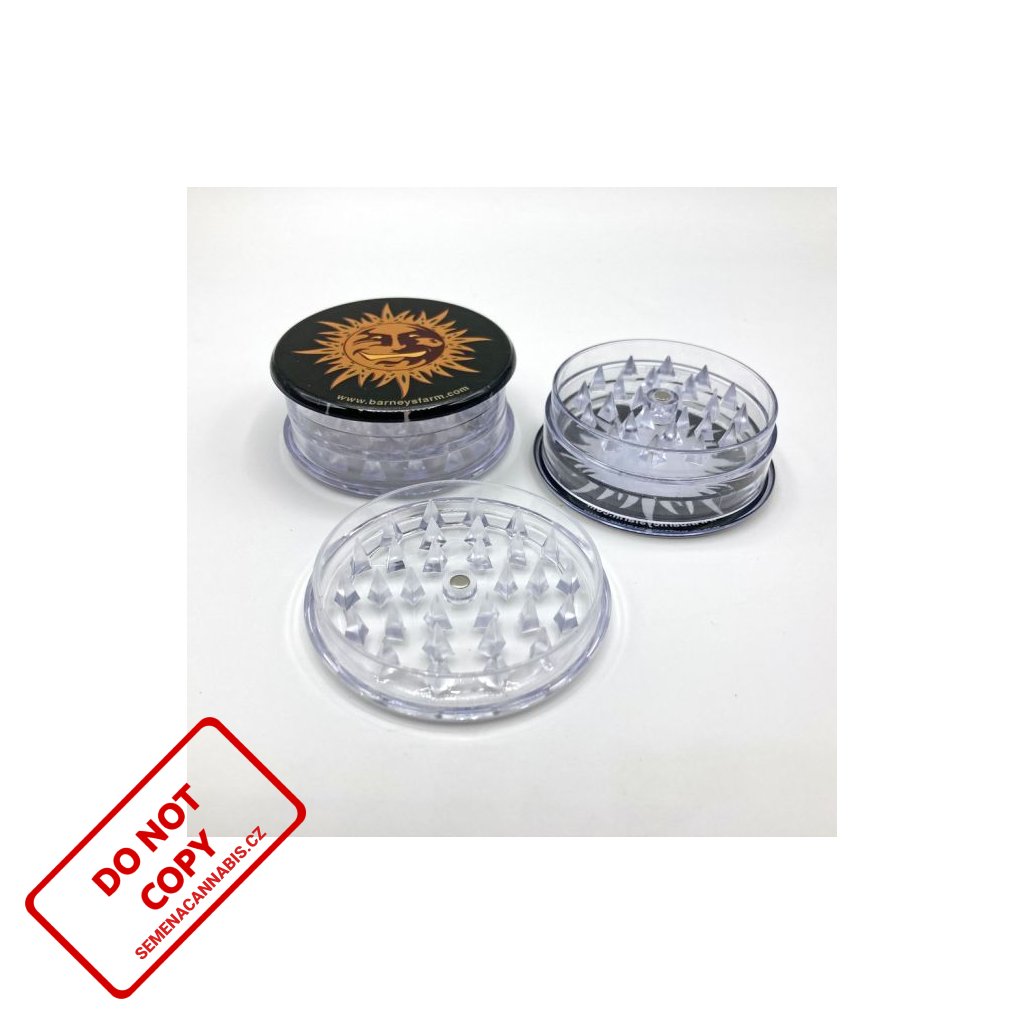 Barney’s Farm plastová drtička je lehký a funkční doplněk z oficiálního merche známé seedbanky. Vyrobena z čirého plastu, s ostrými zuby, magnetickým středem a třídílnou konstrukcí.
