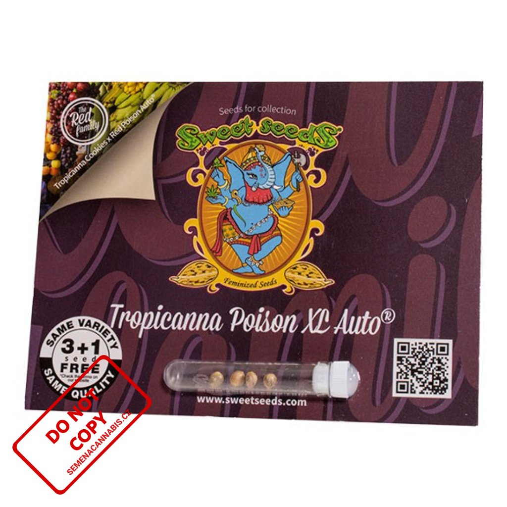 Samokvetoucí feminizovaná verze našeho Tropicanna Poison F1 Fast Version® (SWS85) s červenými květy. Obsahuje genetický materiál z jednoho z nejznámějších "Super Strong" kmenů Cookies v USA, ne méně než Tropicanna Cookies (Girl Scout Cookies x Tangie).